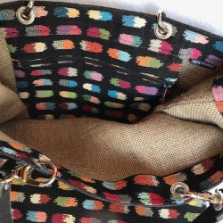 Futterstoff Jute. Innentasche mit Reißverschluss. Griffe aus echtem Leder mit drehbaren Karabinerhaken.