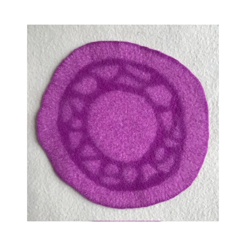 Table mat made of felted wool. Resistant to high temperatures.Diameter: 17 cmThickness: 3 mm